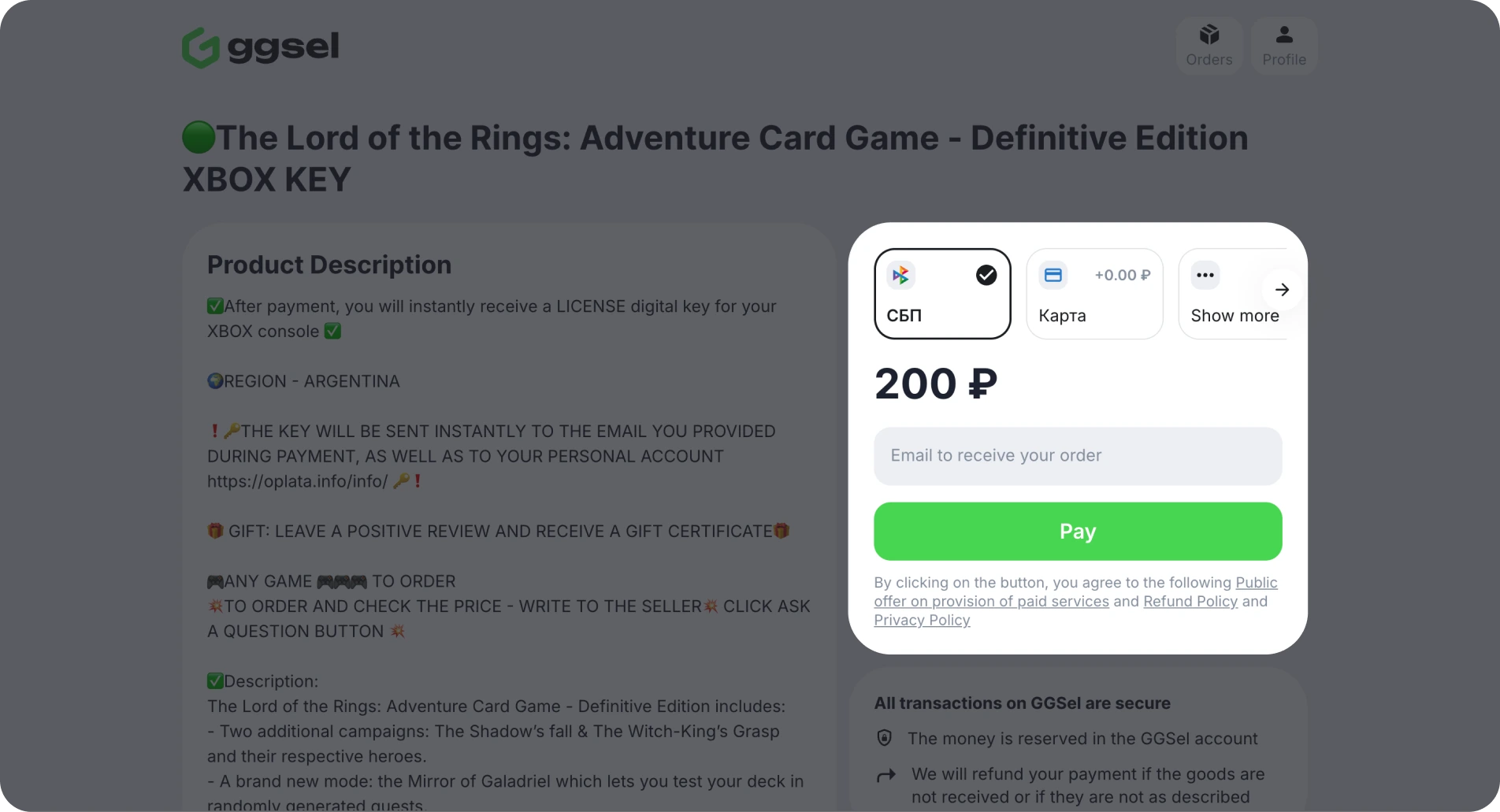Primeiramente, você precisa entrar em contato com o vendedor na página do pedido e informá-lo sobre a situação. De acordo com as regras da plataforma, o vendedor é obrigado a fornecer suporte em até 12 horas. Caso isso não aconteça, você deve entrar em contato com o suporte técnico no site ou por e-mail: support@ggsel.net